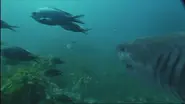 Megalodon made its debut in Into the Mega Jaws of Death when Allen, Rebecca, and company traveled back in time 15 million years ago to Peru, South America during the Middle Miocene epoch. Before risking a dive with an adult Megalodon, they wanted to start with juveniles. Allen and Rebecca dove into shallow waters, first encountering a 6 m (20 ft) juvenile Megalodon when it swam above the pair and an Odobenocetops who was foraging for oysters in some kelp. By taking cover in the foliage, they were able to avoid being caught by the shark. Later, Allen, Rebecca, and the crew crafted a model Odobenocetops and filled it with squid to entice an adolescent Megalodon. With the camera fitted into the model, it was able to capture the moment when an adolescent Megalodon accelerated from the depths and tore the model apart.